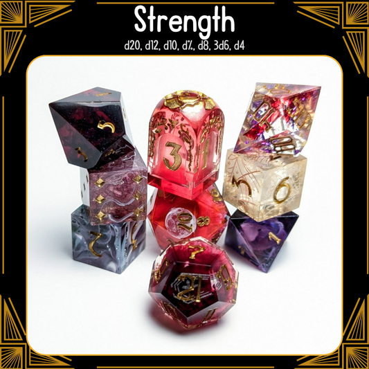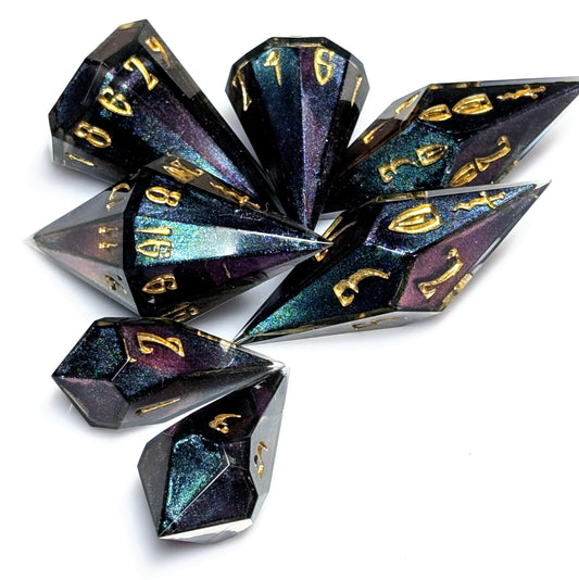 I love your mismatched sets so much. They have so much personality and story, and your themeing is spot on! They are beautiful, unique, and affordable, and as a collector, that is a fire combo! I've managed snag 3 sets now over the years (pictured). They are my favorite sets, and I have a LOT of dice sets!