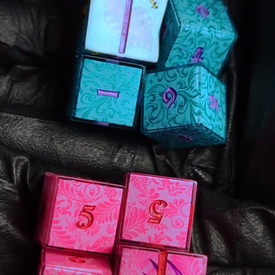 My partner and I loved these dice, we loved that you included a care guide for them and a cloth to clean them with. Just all the little touches of care that went into making these were lovely.